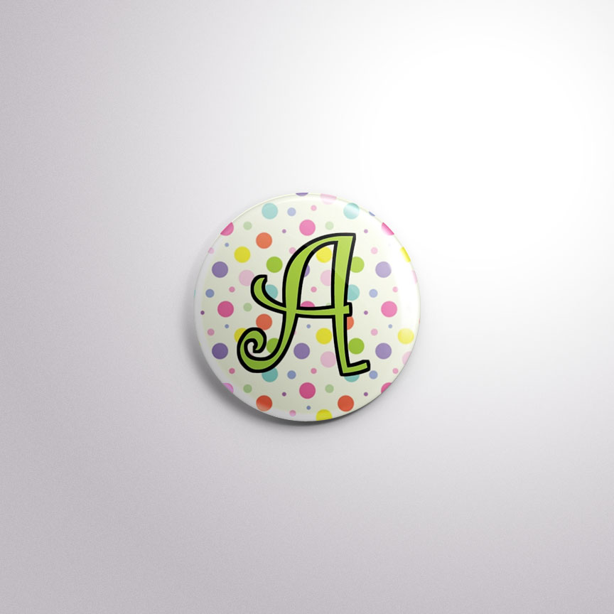 Available in letter A-Z, RN, LPN, CNA and much more. You can also customize your button with up to 3 letters!